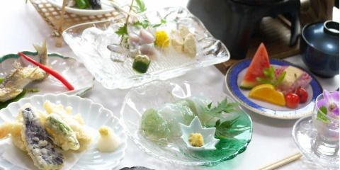 봄은 왓 은어, 여름은 은어 사시미, 가을과 겨울의 자식 은어와 사계절로 옮겨 가는 은어 요리의 물건들.