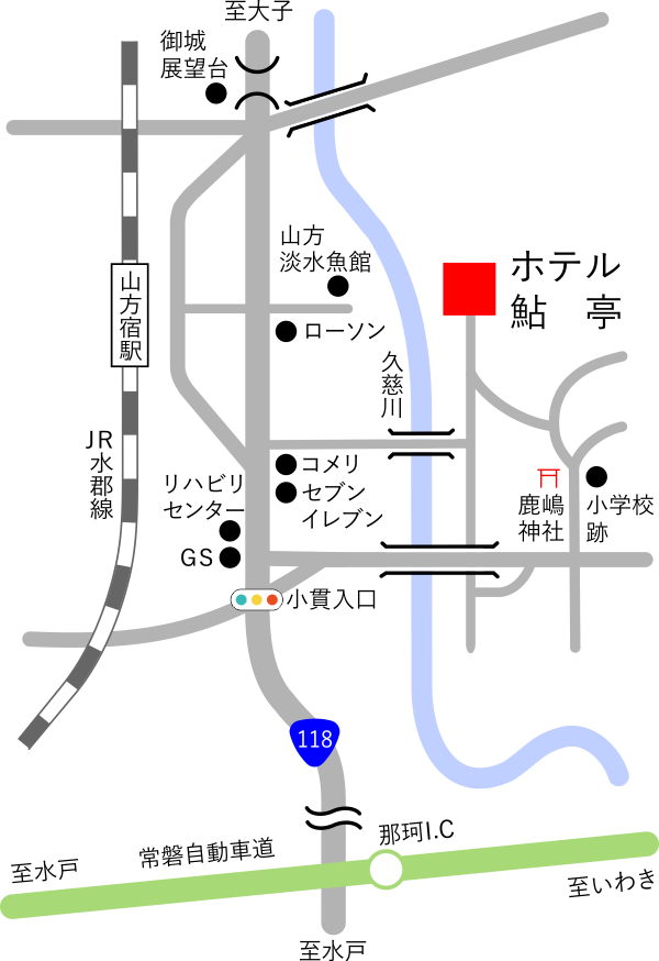 备注 | JR水郡线:从山方宿站开车7分钟(提供接机服务) ■提供接机服务(状况) 仅提供JR山方宿站和 酒店之间的接送服务。 如果您想提出请求,请在入住前一天的 12:00 之前联系我们。 |