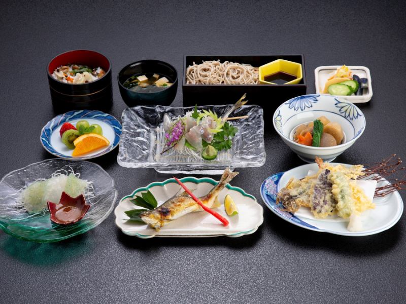 野生蔬菜套餐 | 2,200日圓(2,420日圓(含稅)):香魚和時令蔬菜天婦羅/小菜/野菜飯/味噌湯/醃菜/水果 |