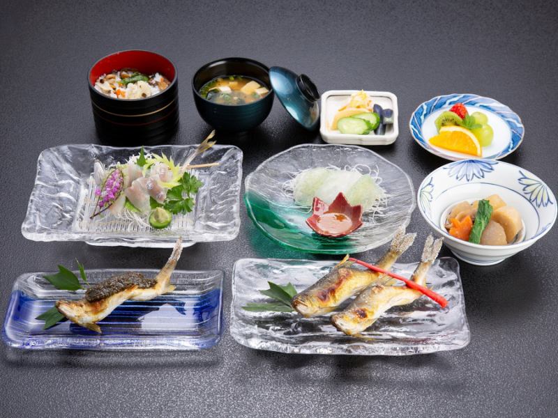 香魚套餐C | 2,600日圓(2,860日圓(含稅)):香魚生魚片(截至10月)或炸香魚/1條香魚田樂/2條鹽烤香魚/小菜/蒟蒻生魚片/野菜飯/味噌湯/泡菜/甜點 |